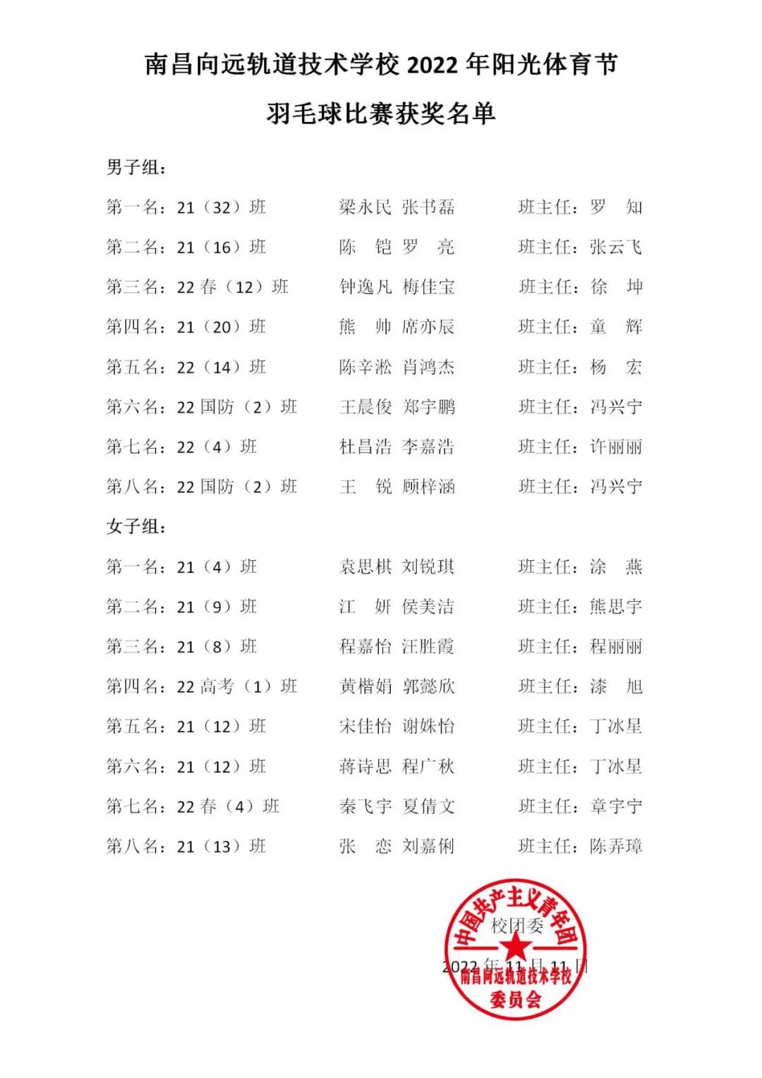 南昌向远轨道技术学校2022年阳光体育节系列赛之羽毛球比赛圆满落幕