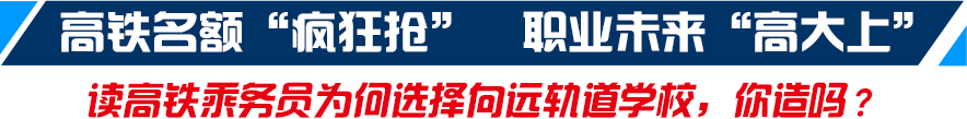 有人对梦想充满向往,有人对生活满怀期望,有人对工作怀着梦想……向往、期望、梦想,向远轨道学校高铁乘务员定向培养班,给你提供实现它的舞台,为你指引实现它的方向,替你架起成功桥梁,让你真正实现未来人生的“高大上”!